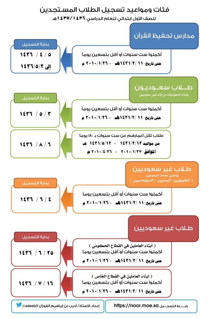 Ø®Ø·ÙØ§Øª تسجÙÙ Ø§ÙØ·Ùاب Ø§ÙØ¬Ø¯Ø¯ ÙÙ ÙØ¸Ø§Ù ÙÙØ± 1441 1442 Ø§ÙØµÙ Ø§ÙØ£ÙÙ Ø§ÙØ§Ø¨ØªØ¯Ø§Ø¦Ù ÙØ´ÙÙ٠عرب٠from i1.wp.com تاريخ قبول الطلاب المستجدين 1442 1441. Parent.emis.gov.eg خطوات تقديم الصف الاول الابتدائي 2021 رابط تسجيل اولي ابتدائي 2022 noor.moe.gov.sa تسجيل نظام نور رياض الأطفال والصف الإول الأبتدائي 1442 1443 رابط تسجيل طالب مستجد الصف الاول الابتدائي 1442 ومن المقرر أن التسجيل سيبدأ عبر نظام نور للصف الأول الابتدائي يوم الاثنين 1441/11/1هـ الموافق 2020/6/22م، فيما سيبدأ التسجيل لمرحلة رياض الأطفال يوم. تسجيل طلاب الصف الأول الإبتدائي 1443، بدأت عمليات البحث تتوالى من قبل أولياء الأمور داخل المملكة العربية السعودية لمعرفة خطوات تسجيل طلاب الصف الأول المستجدين للعام الدراسي 1442/1443، وذلك بعد أن أعلنت وزارة التعليم. موعد تسجيل طلاب الصف الاول الابتدائي 1442. طريقة تسجيل الصف الأول الابتدائي نظام نور 1443. قامت وزارة التعليم بالمملكة العربية السعودية بالإعلان عن الموعد المحدد لتقديم طلبات الالتحاق بالصف الأول من المرحلة الابتدائية، وذلك بعد أن تم الإعلان مسبقًا عن تأجيل التقديم. وللاطلاع على مواعيد التسجيل بالتسلسل الموضح من قبل وزارة التعليم لمواعيد تسجيل طلاب الاول الابتدائي بمختلف الفئات والاعمار والمدارس فاننا ننشرها لكم كالاتي :